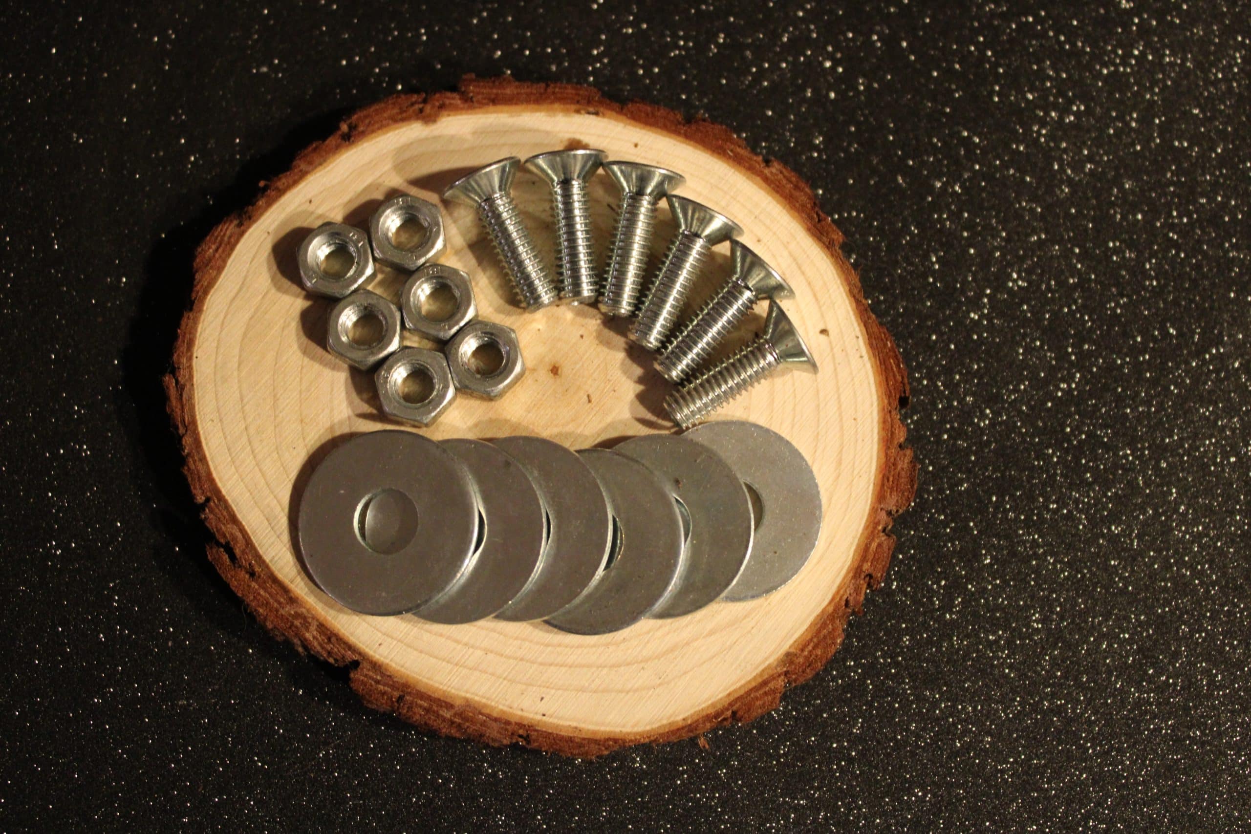 Schrauben-Set für die Montage der Doppelschellen und Dreifach-Schellen am Gurt. Inhalt: 6 Stk Schrauben, 6 Stk. Beilagscheiben, 6 Stk. Muttern.